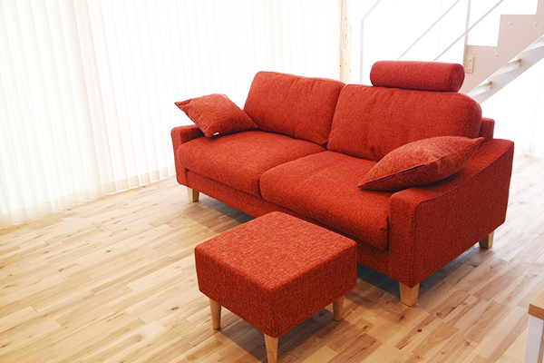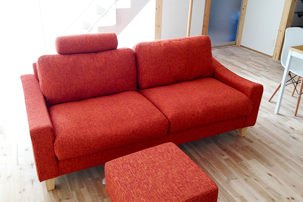 暖色系カラーは、ソファに張ると、色鮮やかにソファが映えます。