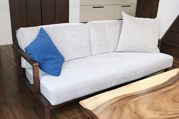 柔らかな素材感は、ソファにふんわりした暖かみとボリューム感を与え、ゆったり座る事ができます。