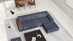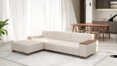 オイル塗装の天然木と共にソファを楽しむ。