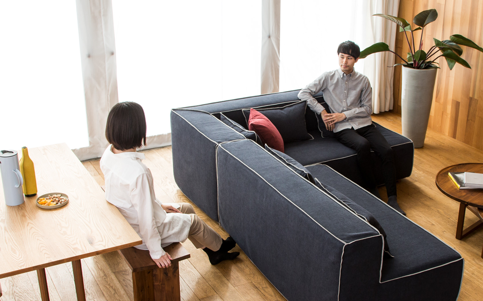ソファOBRYSは脚を外し、搬入可能です。